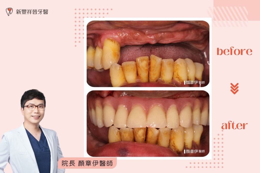 顏章伊院長經審慎評估,為其規劃了高效率的「一日長城」重建方案。透過精密的數位手術導引,我們在一天之內完成了植體置入與固定假牙的安裝,省去了漫長的補骨等待期。