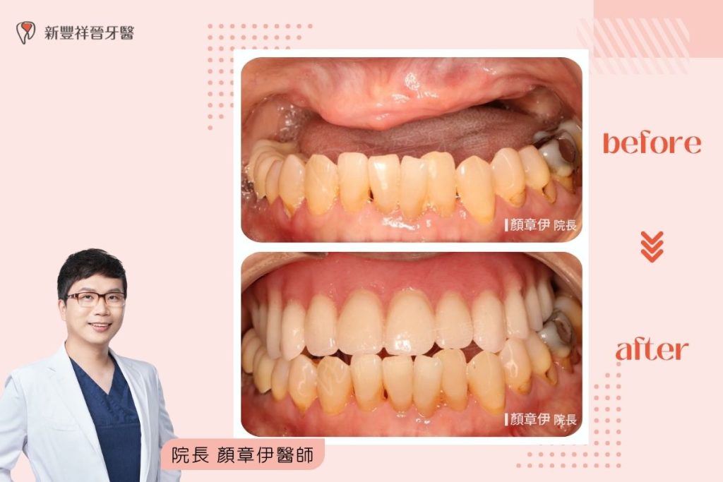 顏章伊院長透過高效率的「一日長城」重建計畫,利用數位導引技術,在一天內為她重建了穩固且美觀的上顎齒列,讓牙齒即刻歸位。