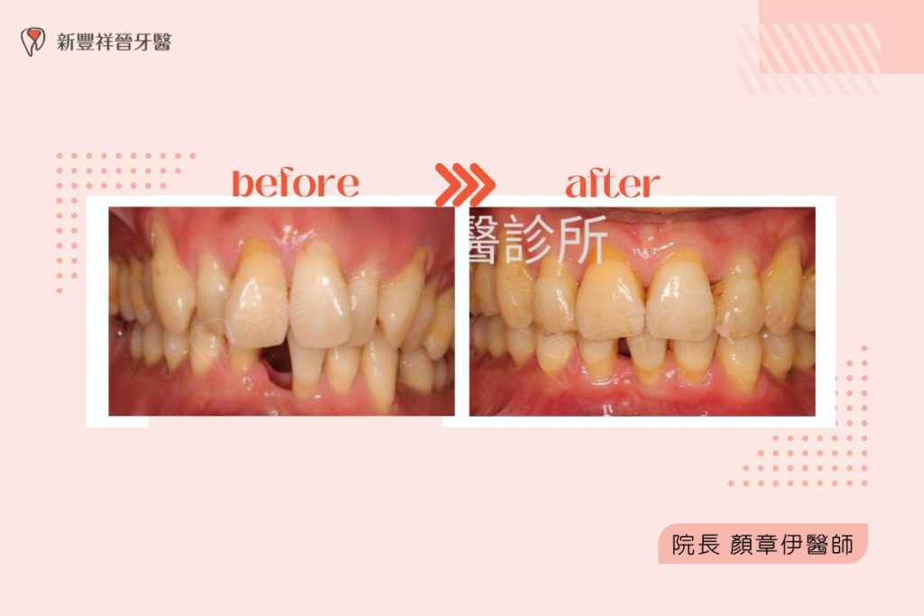 矯正完成後,不僅讓牙齒排列更整齊,也兼顧美觀與功能,讓患者在過程中維持自然外觀,安心完成矯正與重建規劃。